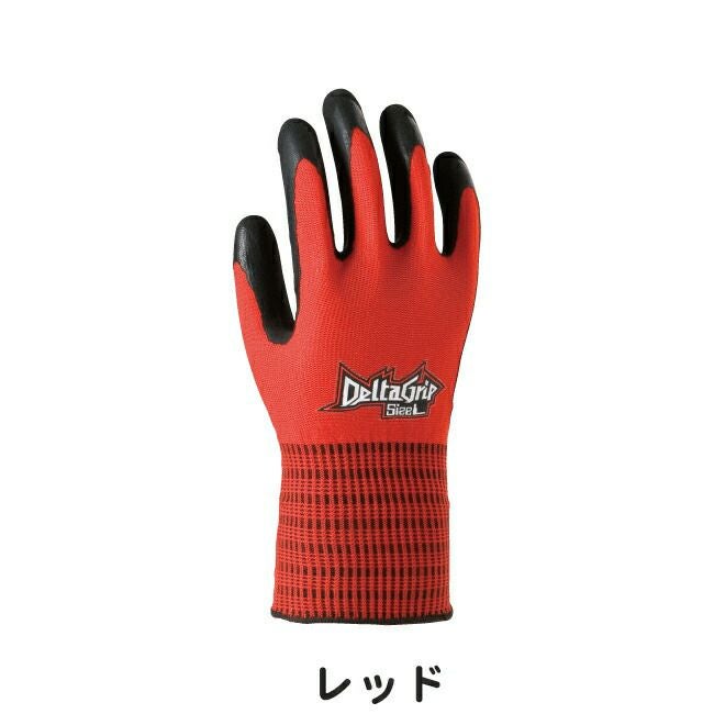 ●手のひら、指に天然ゴムをダブルコーティングした、丈夫な手袋です。