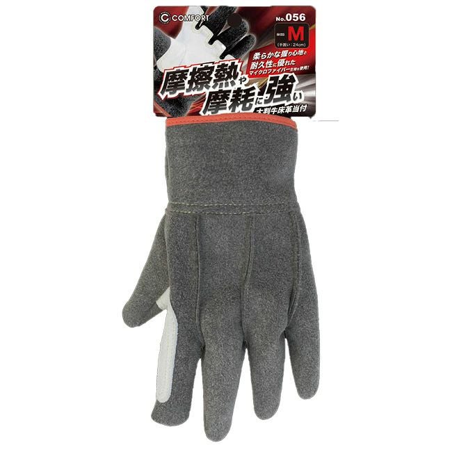 摩擦熱や摩耗に強い プロにも選ばれる大判革あて付き手袋 富士手袋 056 天牛コンフォート 大判牛床革当付 10双セット