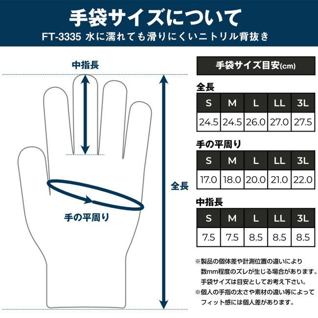 他の画像を見る 水に濡れても滑りにくい CUC COVER WORK 水に濡れても滑りにくい ニトリル 背抜き 手袋 FT-3335 【cw0211】 | グローブ ニトリルゴム ゴム手袋 作業 作業用 現場 柔軟性 グリップ力 通気性 柔らかい 水 濡れ 滑りにくい 黒 販売価格 ¥ 294 税込 カートに入れる お気に入りに登録する