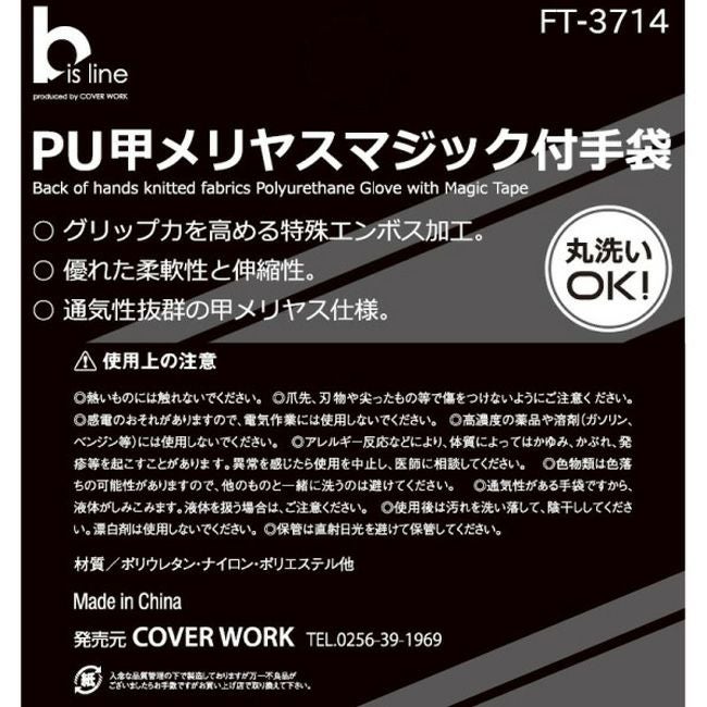 他の画像を見る 優れた柔軟性と伸縮性、通気性抜群の甲メリヤス仕様 CUC COVER WORK PU 甲メリヤス マジック付 手袋 FT-3714 【cw0851】【cw0852】【cw0853】 | bisline グローブ 作業 作業用 現場 柔軟性 伸縮性 グリップ力 エンボス加工 通気性 甲メリヤス仕様 黒 レッド デジカモ 販売価格 ¥ 544 税込 カートに入れる お気に入りに登録する