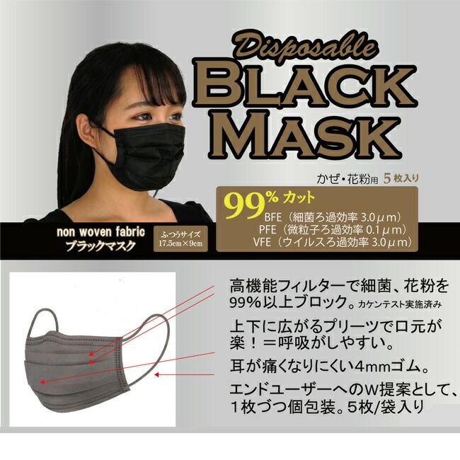 【6点までゆうパケット発送OK】いま 話題 の 黒マスク かぜ 花粉 用 花粉対策 フィルター入り ブラック マスク