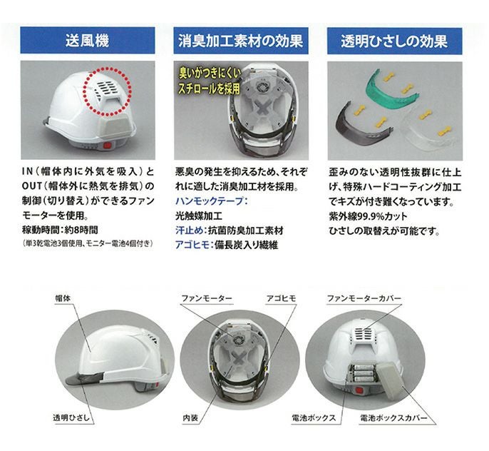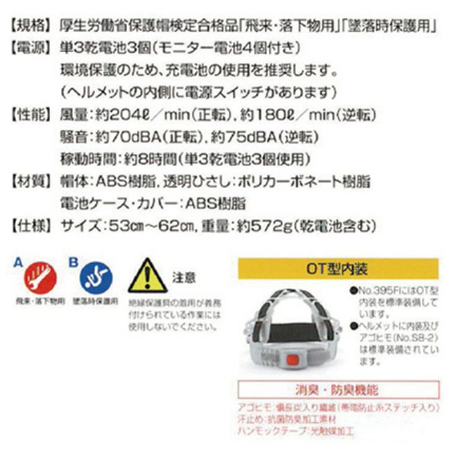他の画像を見る 直接風を取り込めるヘルメット トーヨーセーフティー TOYO 送風機内蔵ヘルメット 白/スモーク No.395F-S 定価 オープン価格 販売価格 ¥ 8,900 税込 在庫切れ 再入荷お知らせ お気に入りに登録する