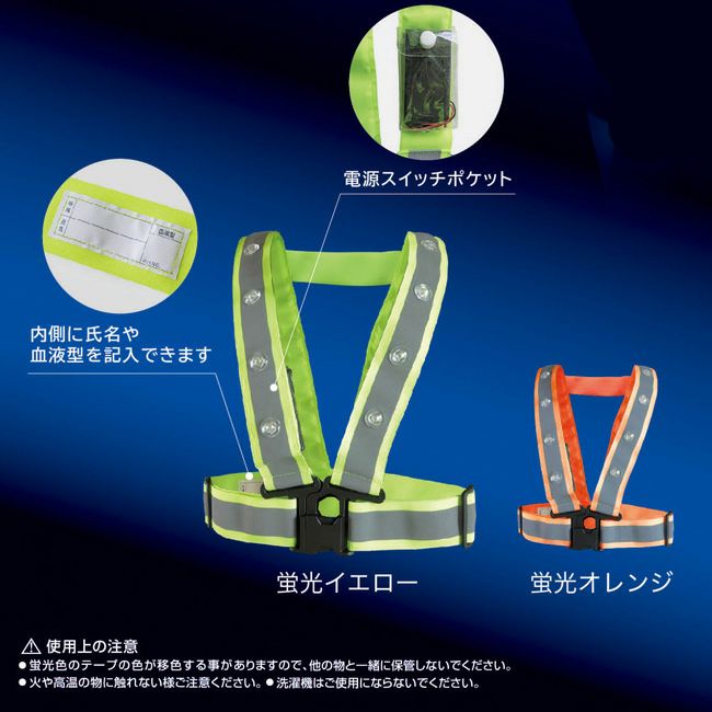 富士手袋 LEDテープベスト ハーネス・電動ファン対応 8275 | 反射ベスト 反射 LED テープベスト 安全 安全ベスト バックル 蛍光 高視認 作業 作業服 警備 防犯 交通安全 パトロール イエロー オレンジ