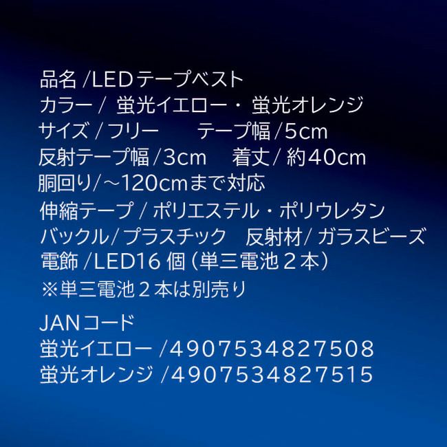 品質:伸縮テープ/ポリエステル・ポリウレタン バックル/プラスチック 反射材/ガラスビーズ