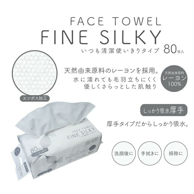他の画像を見る いつも清潔使い切りタイプ 厚手タイプでしっかり吸収 使い切りフェイスタオル厚手 80枚入 ファインシルキー 川西工業 6926 販売価格 ¥ 370 税込 カートに入れる お気に入りに登録する