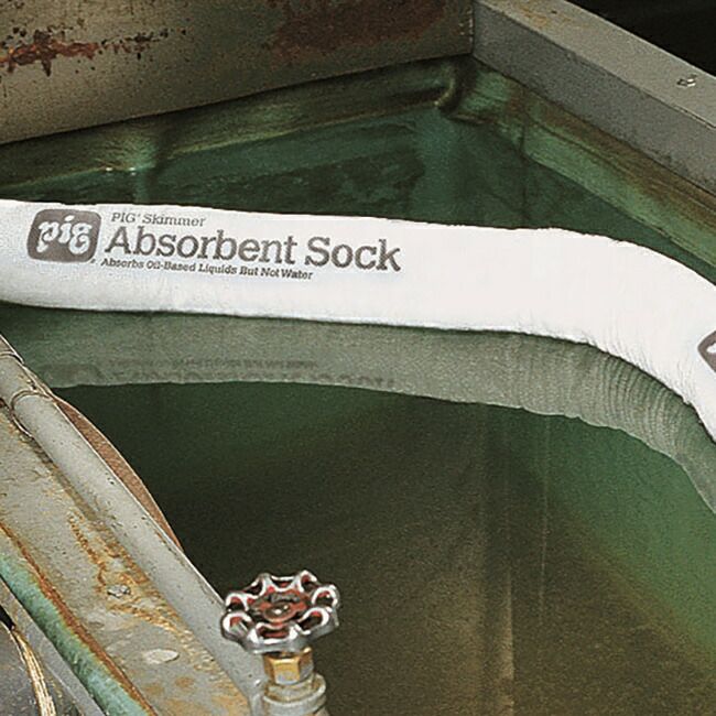 スキマーソックス ― 極めて高い耐薬品性を持ち、酸性の薬液槽から油を吸収することができます。