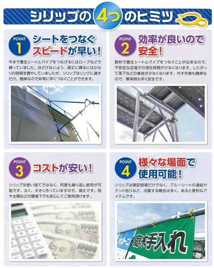 他の画像を見る 安全製とスピードが大幅にUP間違いなし!シートとパイプをつなぐ画期的な新商品! 養生シート連結用クリップ 【シリップ】シート&パイプ用 クリップ 販売価格 ¥ 138 税込 カートに入れる お気に入りに登録する