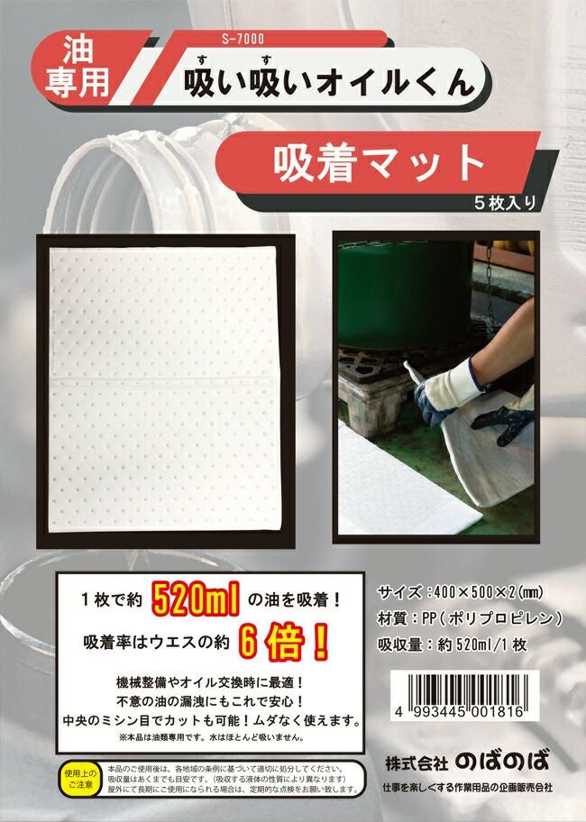 他の画像を見る 1枚 で 約 520ml の 油を 吸い取る 吸着率 は ウエス の 約 6倍 【5枚入り】油 専用 吸着マット 【吸い吸いオイル君】 S-7000 油専用 販売価格 ¥ 4,400 税込 カートに入れる お気に入りに登録する
