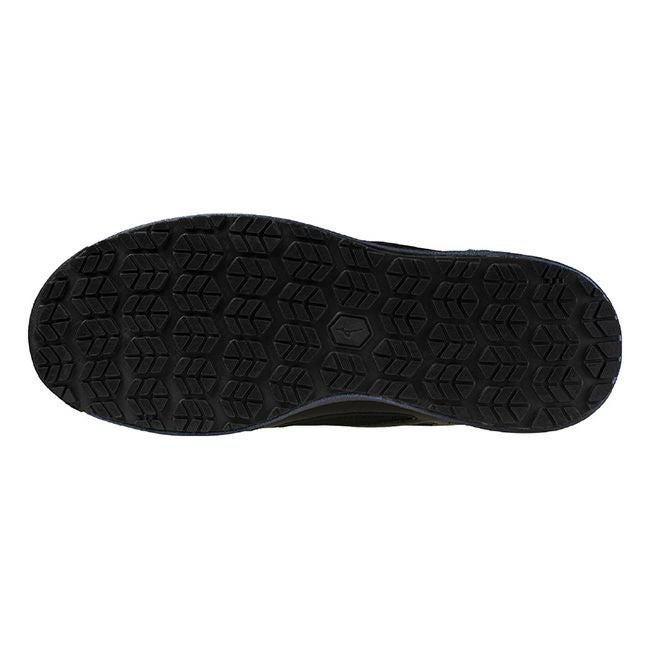 先芯周り、シューズサイドにニット風メッシュを使用。長時間働き続ける足元に通気性をプラス。