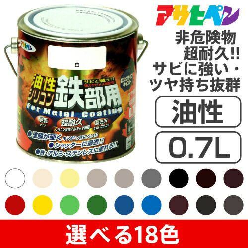 他の画像を見る 【選べる18色】屋内外の鉄部 鉄製品 アルミ ステンレス 屋内の木部 木製品に 消防法上の非危険物です アサヒペン油性シリコン鉄部用(0.7L) 販売価格 ¥ 2,673 税込 カートに入れる お気に入りに登録する
