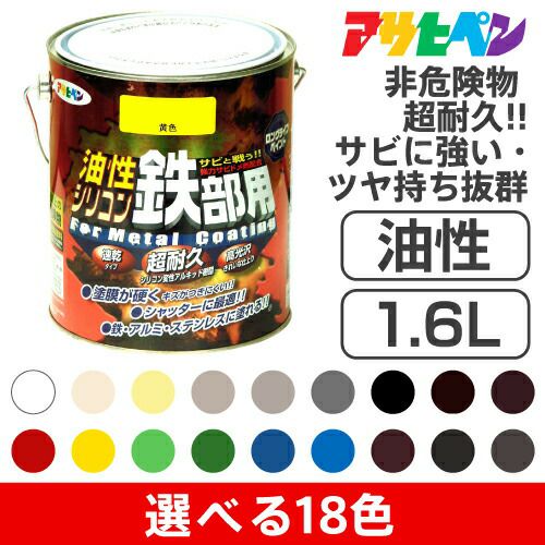 他の画像を見る 【選べる18色】屋内外の鉄部 鉄製品 アルミ ステンレス 屋内の木部 木製品に 消防法上の非危険物です アサヒペン油性シリコン鉄部用(1.6L) 販売価格 ¥ 3,784 税込 カートに入れる お気に入りに登録する