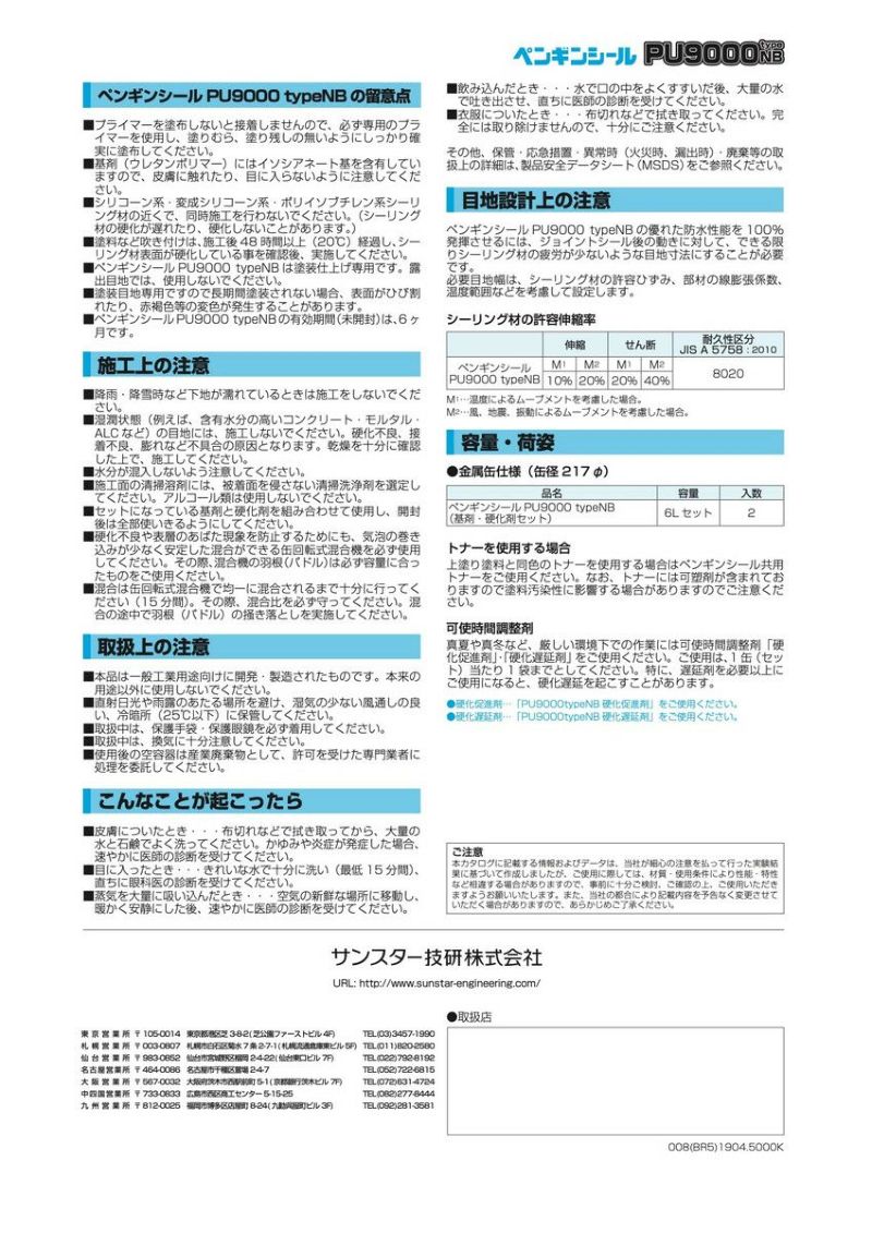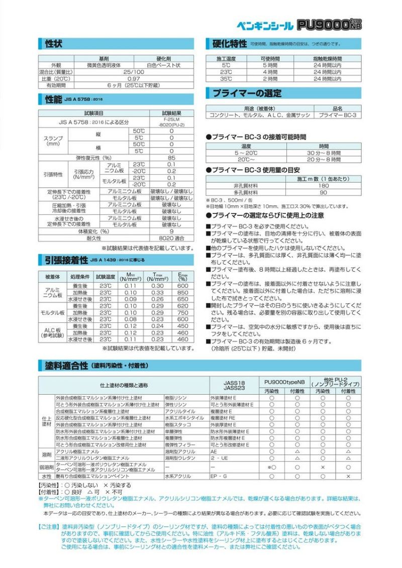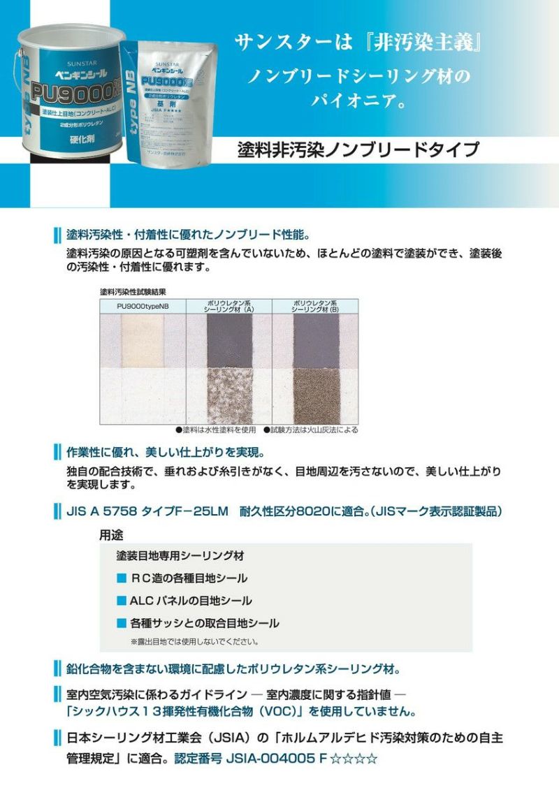 他の画像を見る ポリウレタン系 塗料 非汚染 ノンブリード 2成分形 【6L入x2セット】ペンギンシール PU9000 TypeNB ノンブリード シーリング 2成分形 ポリウレタン 販売価格 ¥ 10,041 税込 カートに入れる お気に入りに登録する