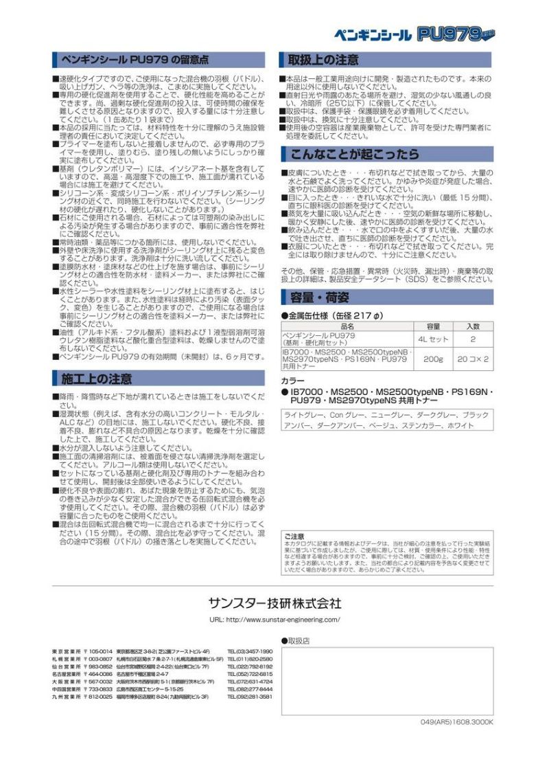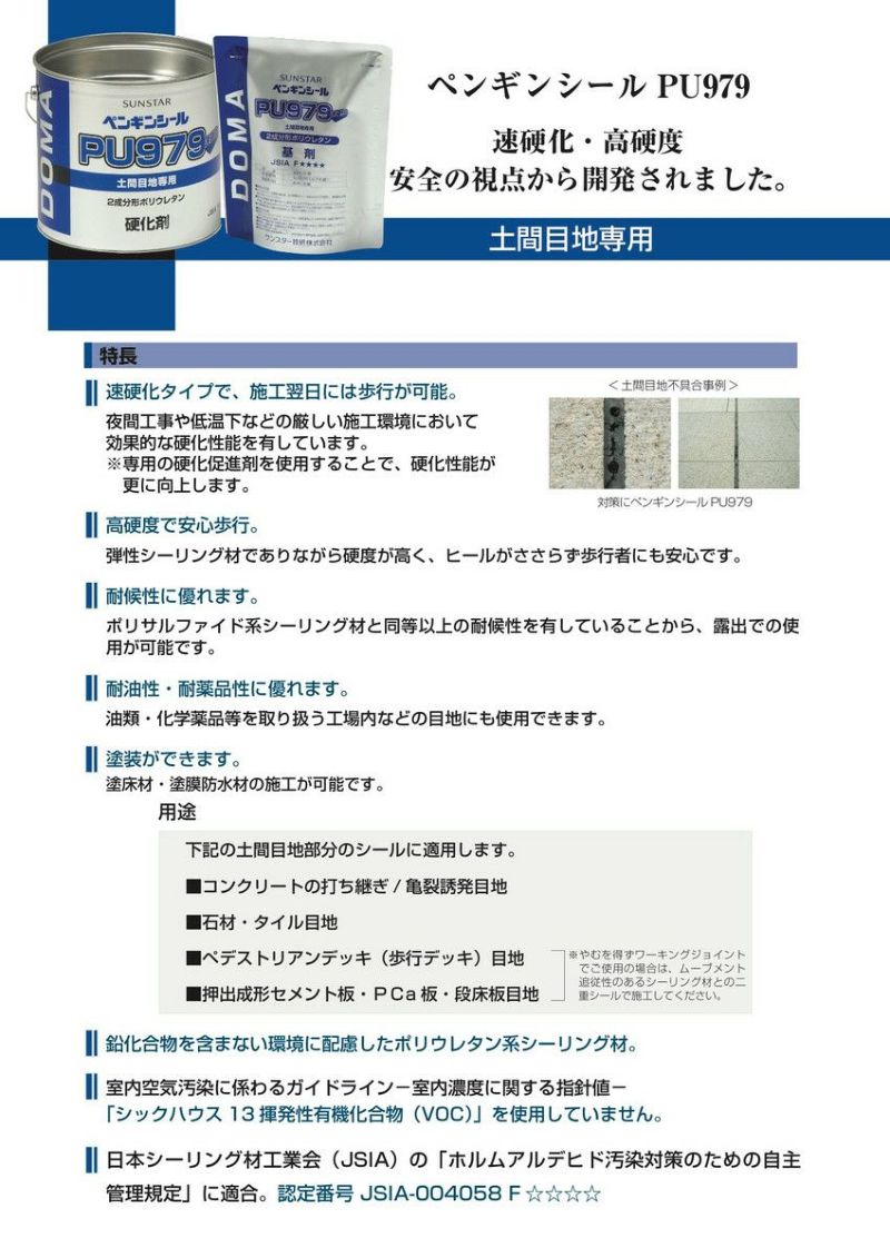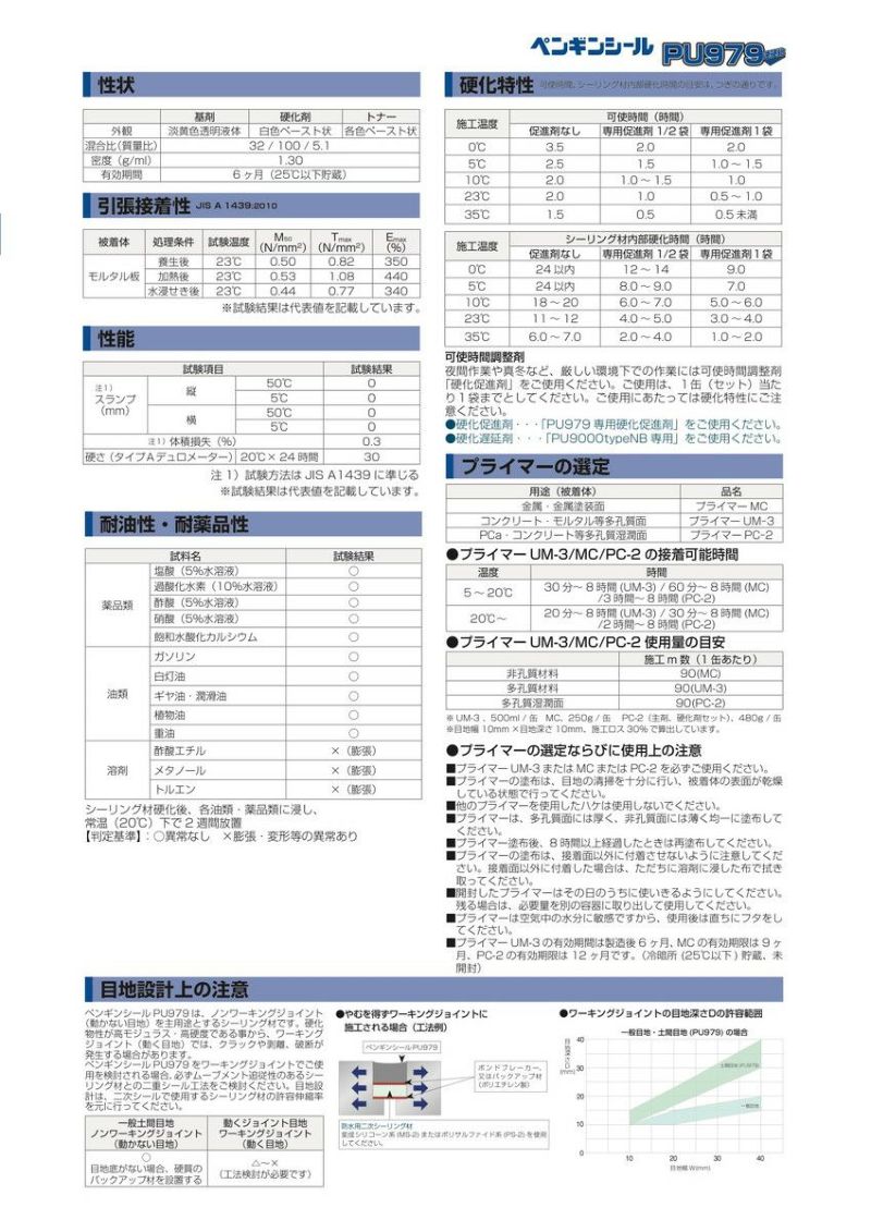 他の画像を見る ポリサルファイド系 土間目地 専用 2成分形 【4L入x2セット】ペンギンシール PU979 シーリング 2成分形 土間用ポリウレタン 販売価格 ¥ 19,986 税込 カートに入れる お気に入りに登録する