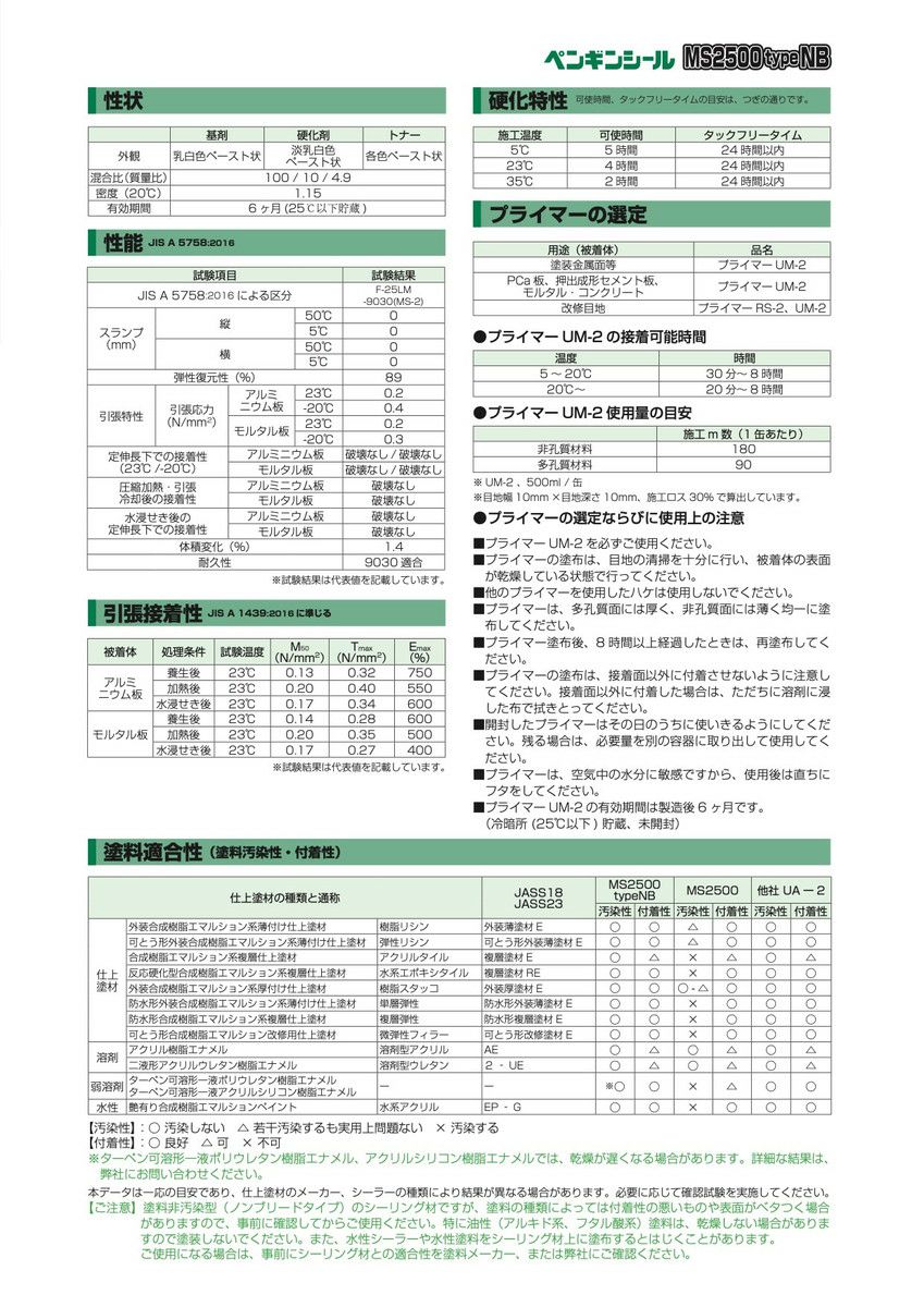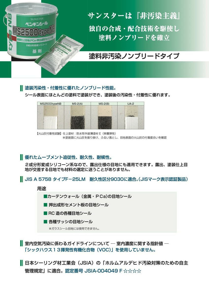 変成シリコーン系 塗料非汚染 ノンブリード 2成分形 【4L入x2セット】ペンギンシール MS2500 type NB ノンブリード シーリング 2成分形 変形シリコーン