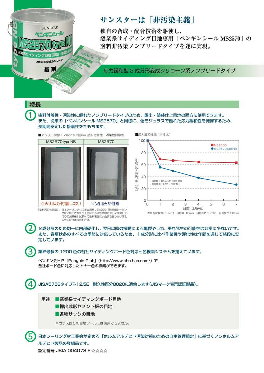 変成シリコーン系 窯業用 サイディング目地 塗料 非汚染 ノンブリード 2成分形 【4L入x2セット】ペンギンシール MS2570 typeNB ノンブリード シーリング 2成分形 変形シリコーン