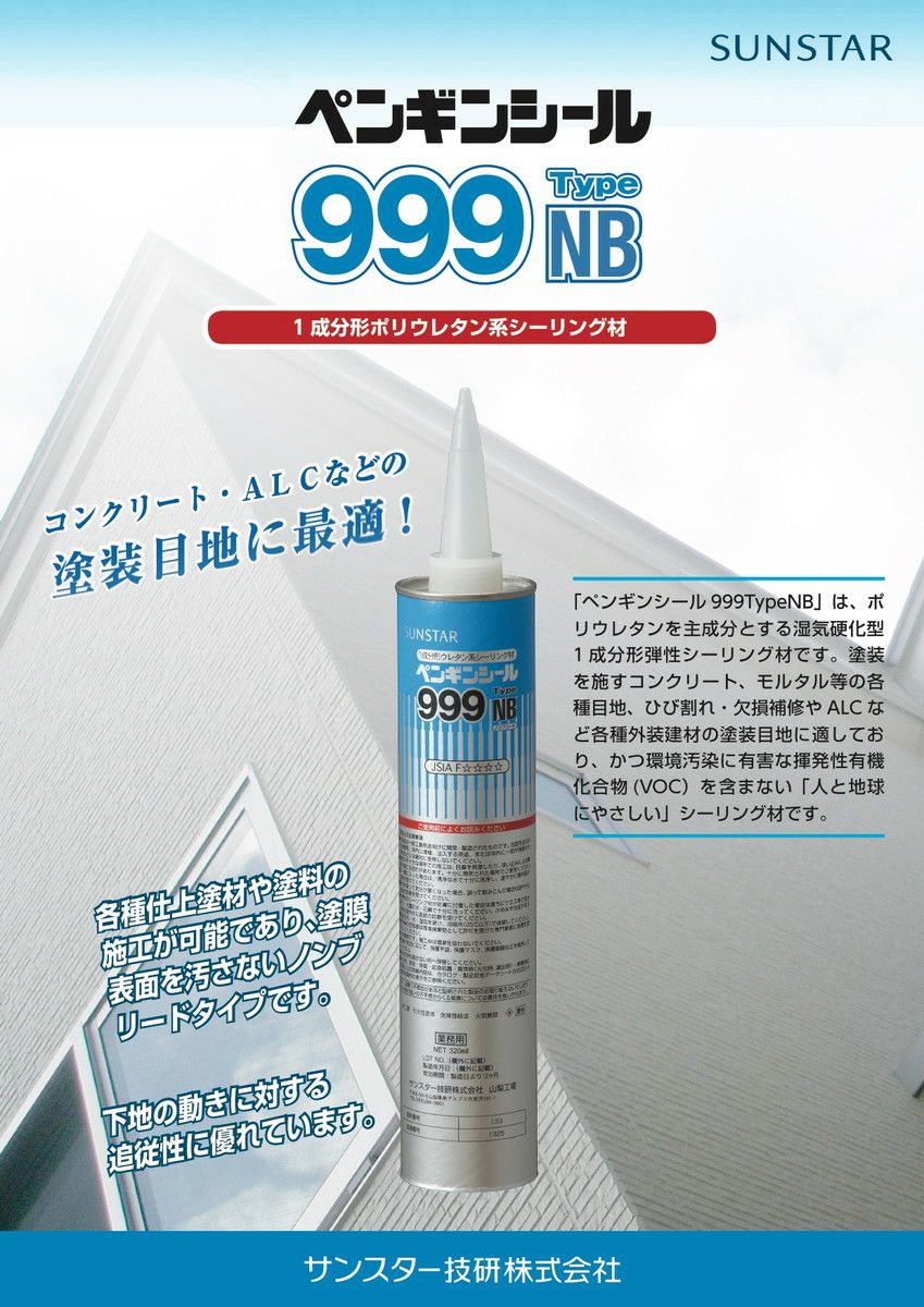 低モジュラス ポリウレタン系 塗料 非汚染 ノンブリード 1成分形 【320mm 10本セット】ペンギンシール 999NB ノンブリード シーリング 1成分形 ポリウレタン