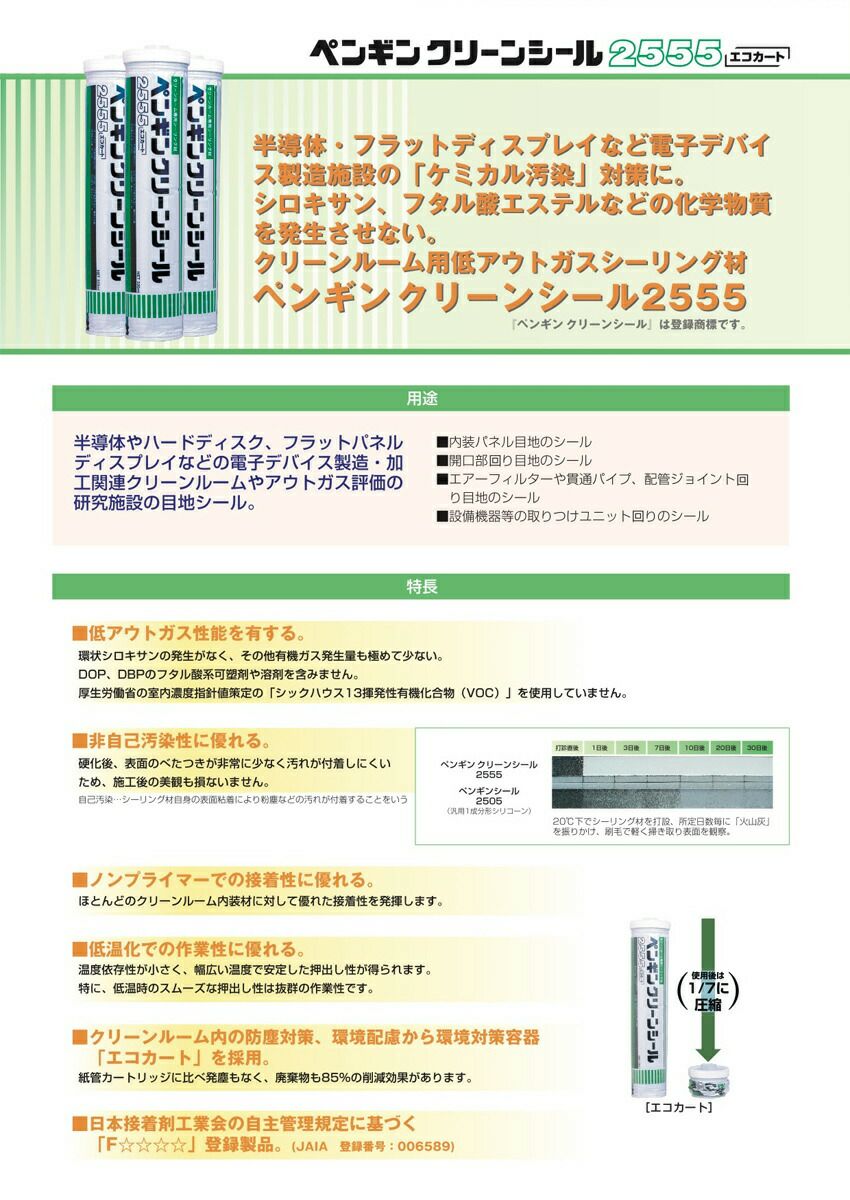 変成シリコーン系 クリーンルーム用/1成分形エコカートタイプ低シロキサンカット・低アウトガス 【320mm 10本セット】ペンギンシール 2555 クリーンルーム用 シーリング 1成分形 変成シリコーン