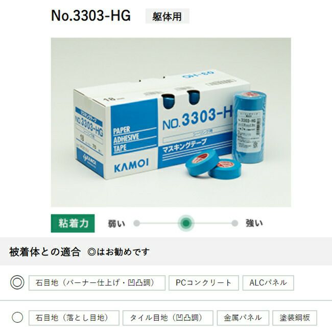 他の画像を見る シーリング マスキング テープ ドラゴン シリーズ カモ井加工紙 シーリング用 マスキングテープ 【3303-EV】 躯体 シーリング用 販売価格 ¥ 7,224 税込 カートに入れる お気に入りに登録する