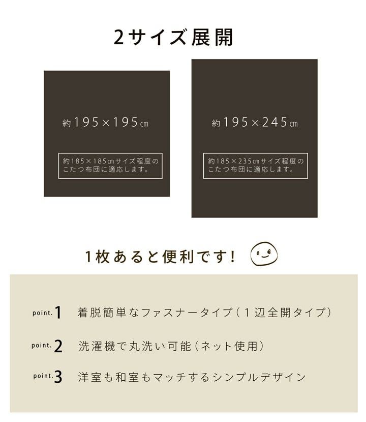 【代引き不可】洗えるこたつ掛けカバー 洗える こたつ掛けカバー 『アトリエ カバー』 約195×195cm ファスナー付き | 冬 あったかい あたたかい 暖かい 温かい 暖房