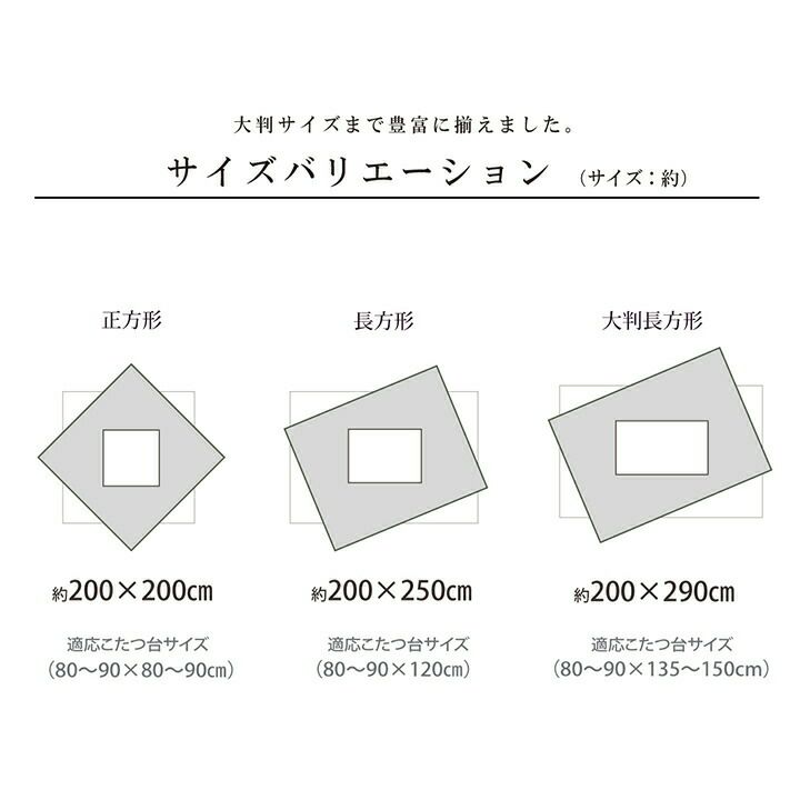 他の画像を見る 【代引き不可】しじら織りの和モダンなこたつ布団 こたつ布団 長方形 単品 しじら織り 約205×315cm | 冬 あったかい あたたかい 暖かい 温かい 暖房 販売価格 ¥ 17,800 税込 詳細を見る お気に入りに登録する