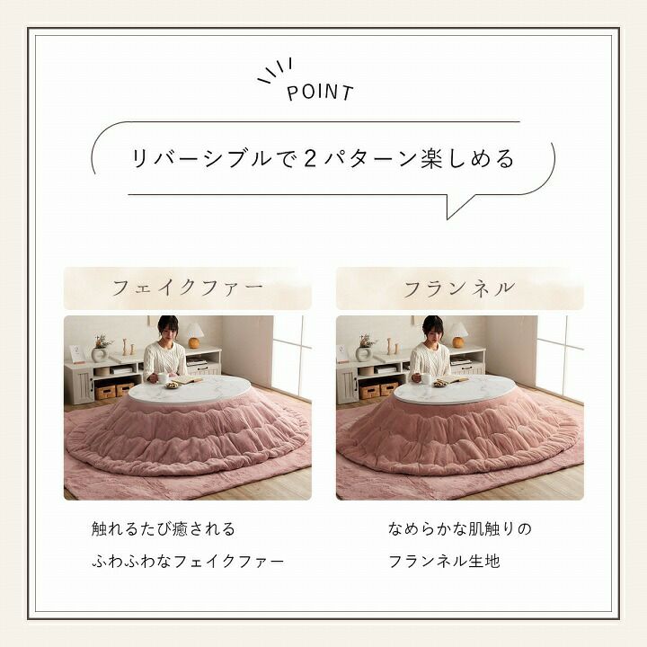 他の画像を見る 【代引き不可】フェイクファーのかわいい無地調こたつ布団 こたつ布団 円形 無地調 約220cm丸 | 冬 あったかい あたたかい 暖かい 温かい 暖房 販売価格 ¥ 15,538 税込 詳細を見る お気に入りに登録する