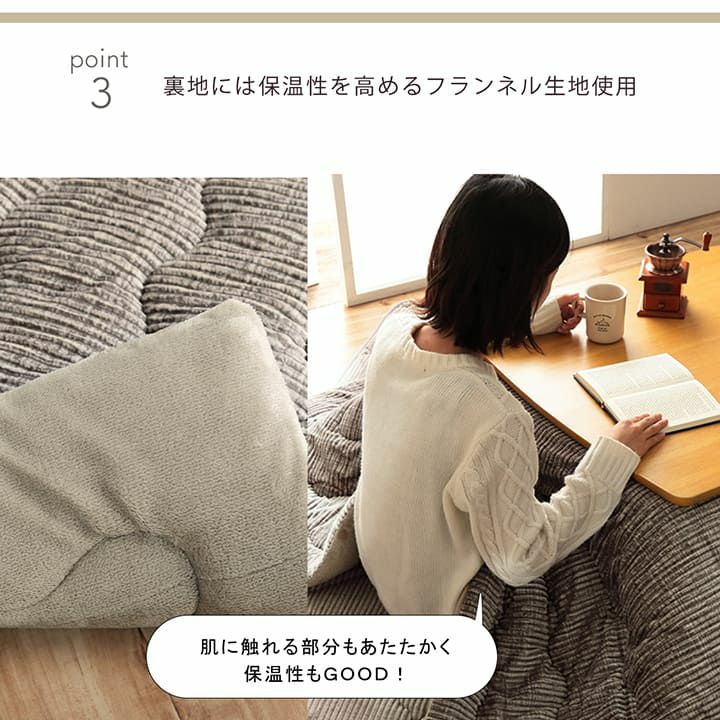 他の画像を見る 【代引き不可】抗菌防臭で清潔な、無地こたつ布団 こたつ布団 長方形 無地 コーデュロイ調 抗菌防臭 約205×285cm | 冬 あったかい あたたかい 暖かい 温かい 暖房 販売価格 ¥ 12,800 税込 詳細を見る お気に入りに登録する