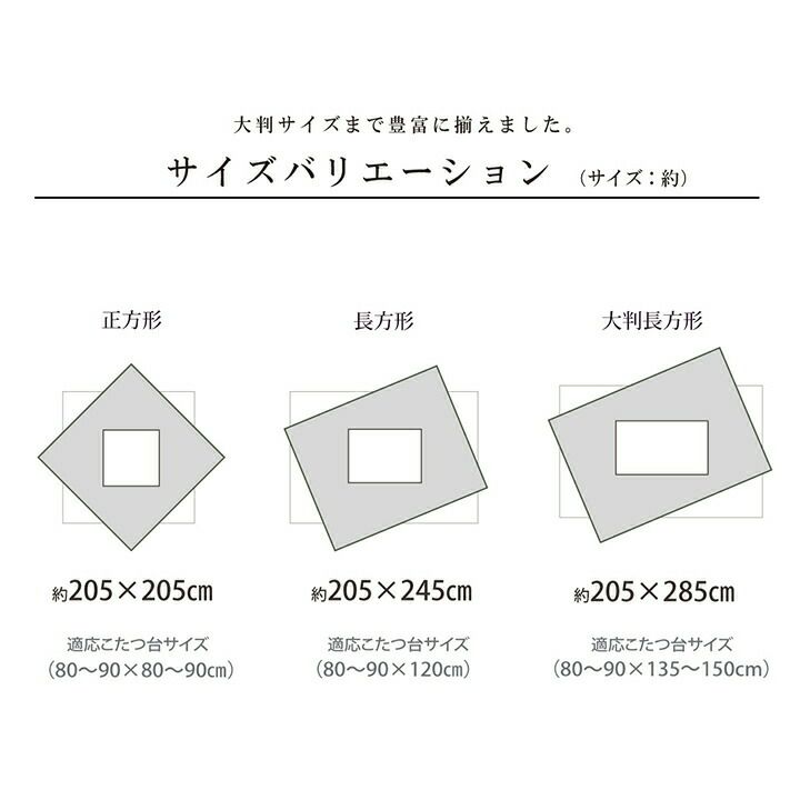 他の画像を見る 【代引き不可】エレガンスで高級感のある日本製こたつ布団 こたつ布団 単品 ふっくら 日本製 エレガンス調 正方形 約205×205cm | 冬 あったかい あたたかい 暖かい 温かい 暖房 販売価格 ¥ 9,980 税込 詳細を見る お気に入りに登録する