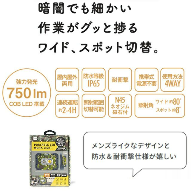 暗闇 でも 細かい 作業 が ぐっと 捗る ワイド スポット 切り替え キシマ ダグ ポータブル LED ワークライト VR-02DWC