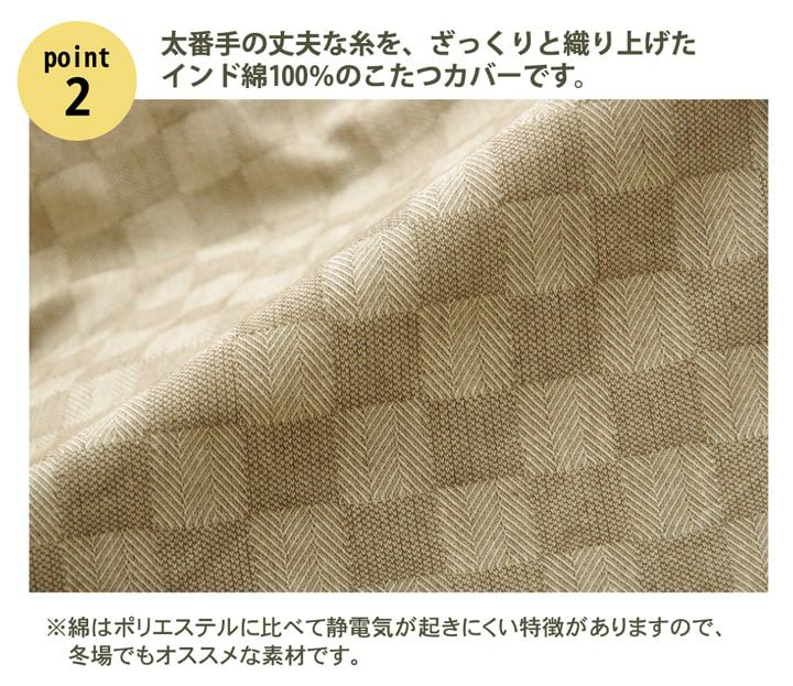 他の画像を見る 【代引き不可】綿100%の格子柄こたつ布団カバー インド綿100% 格子柄 こたつ布団カバー 『クレタ』 約215×215cm | 冬 あったかい あたたかい 暖かい 温かい 暖房 販売価格 ¥ 6,480 税込 詳細を見る お気に入りに登録する