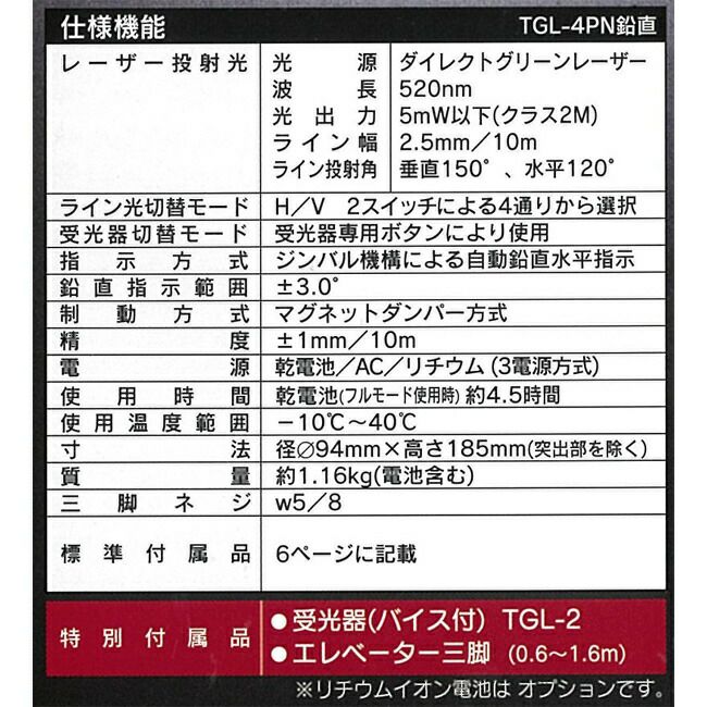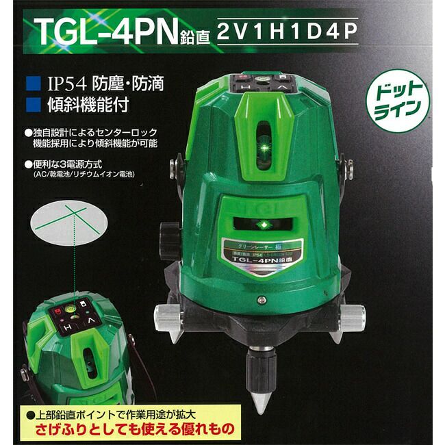 プロ の 現場 で 活躍 する TGL シリーズ 盗難 火災 補償 付き グリーンレーザー 墨出し器 TGL-4PN 鉛直