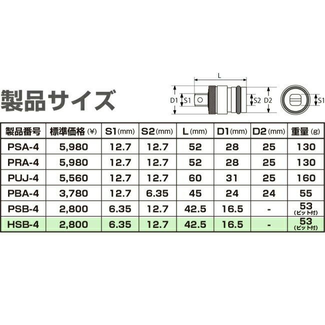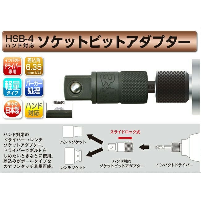 椿モデル ハンド対応 ソケットビット アダプター 6.35mm HSB-4