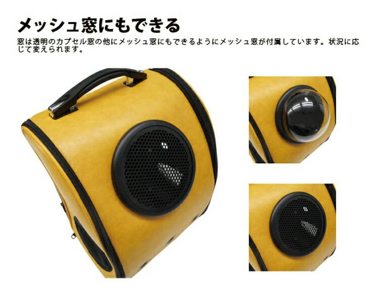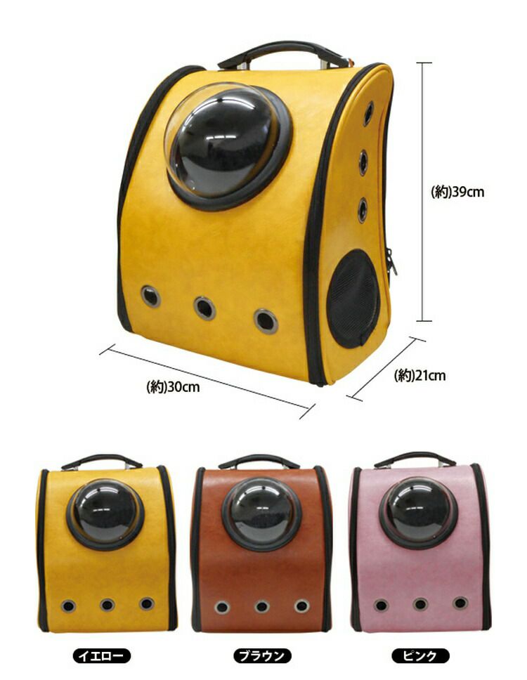 BR-975-y/b/p ペット・キャリーカプセルバッグ(イエロー/ブラウン/ピンク)