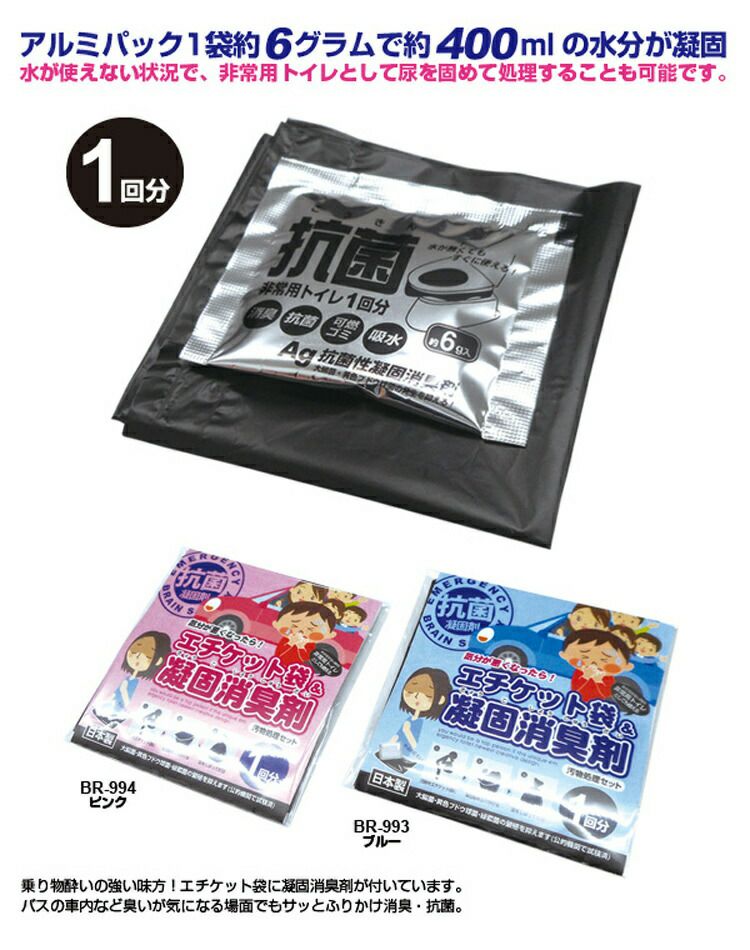 BR-993/BR-994 エチケット袋&凝固消臭剤セット(1回分) ブルー/ピンク 【アルミ個包装粉末】