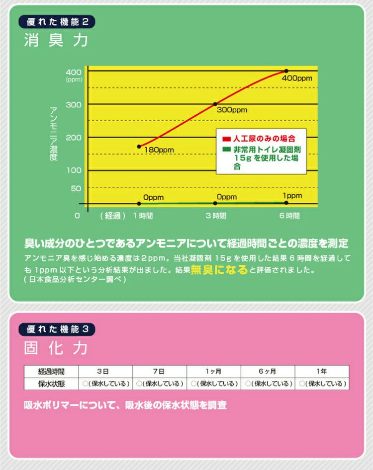 ●凝固消臭剤は銀を配合しているので抗菌作用があり、感染症の原因となる大腸菌や黄色ブドウ球菌の繁殖を抑えます。大阪市立工業研究所の抗菌力試験でも抗菌力が認められました。