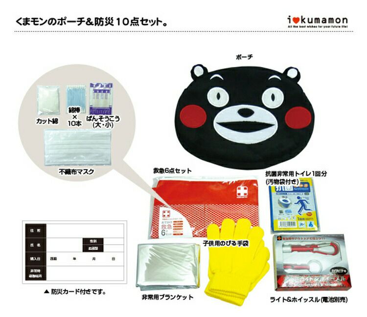 商品管理番号/KU-614 くまモンのポーチ&防災10点セット