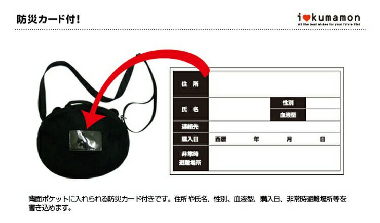 くまモンの顔がかわいいショルダーポーチ&防災グッズ10点のセットです。