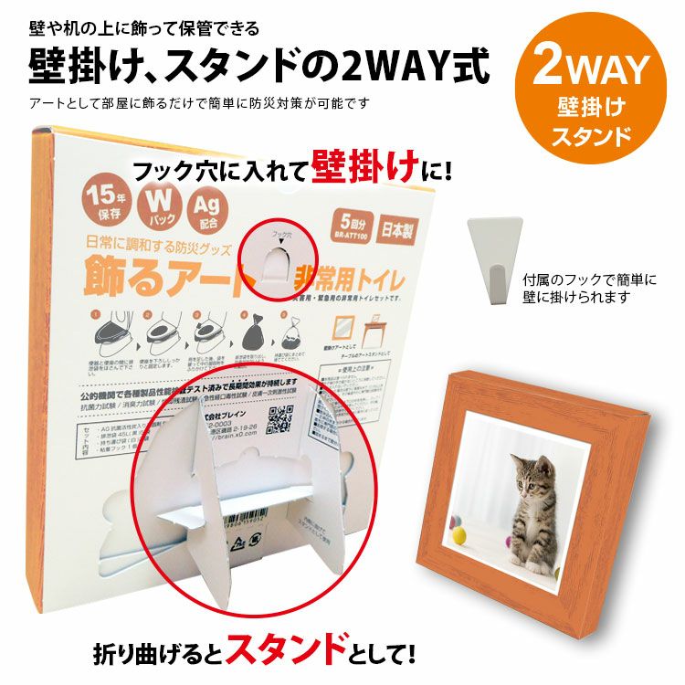 ● 吊り下げて壁掛けアートやスタンドアートとして使える2WAYタイプの飾れるアートの非常用トイレセットです。