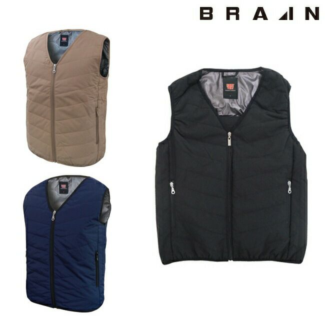 ●あったか防寒インナーベスト。上着の下に着ることが可能なVネック&薄手タイプ。薄手ですが中綿入りであったか!薄手で軽量、しかも高い保温性のアルミコーティング裏地使用!