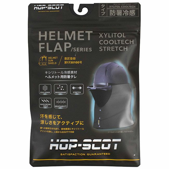 水分を含むことで冷たく感じるキシリトールプリントが施されたヘルメット装着防暑タレ。普段使用しているヘルメットに装着することで、猛暑時の日差しよけに加えて、発汗時には裏面のキシリトールプリントによりヒンヤリとした冷たさを感じれます。通気性にも優れ、吸水速乾で抗菌防臭を備えた素材を使用しました。(意匠登録:第1730100号)