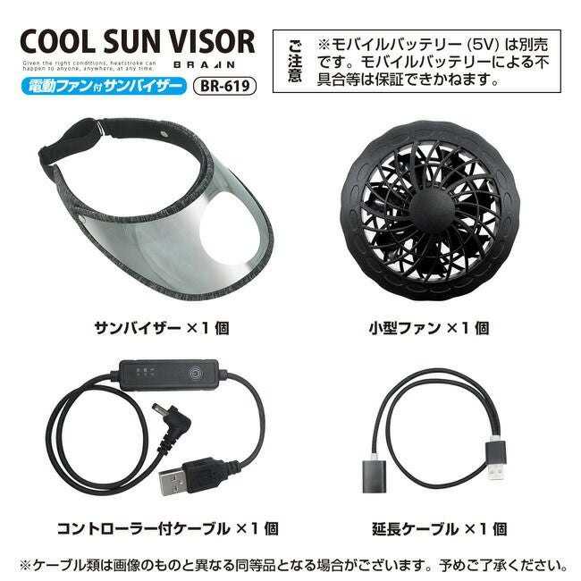 セット内容:本体(サンバイザー)×1個、小型ファン×1個、コントローラー付スイッチ×1個、延長ケーブル×1個