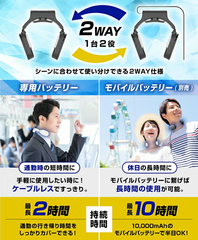 モバイルバッテリー(別売):強モード 約5時間15分 弱モード 約10時間30分