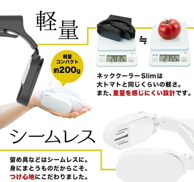 ●冷却効率がUPし、より「Slim」に進化小型冷蔵庫にも使われる「ペルチェ冷却装置」で、 真夏でもひんやり冷たい!水や冷却ジェルと異なり、電気の力で冷たさが持続します。