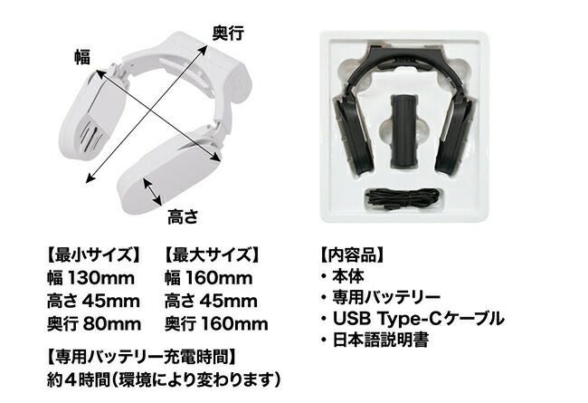 専用バッテリー使用時:強モード 約1時間 弱モード 約2時間