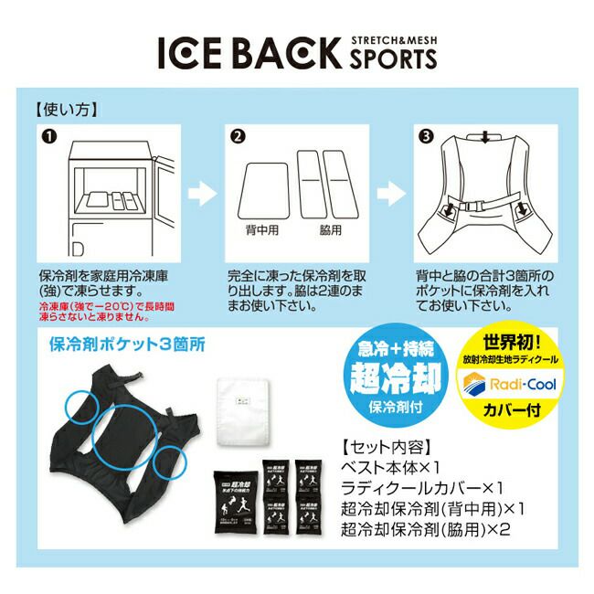 他の画像を見る 世界初の放射冷却素材 炎天下でも日陰のような涼しさ + メッシュ素材で動きやすい! BRAIN ブレイン アイスバックスポーツ ラディクールカバー付き BR-R544 販売価格 ¥ 4,109 税込 カートに入れる お気に入りに登録する