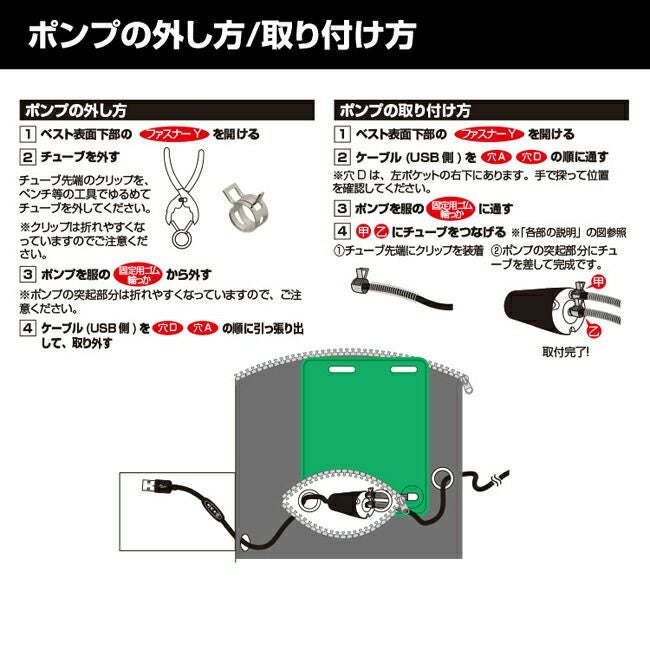 ※長いチューブは、水冷ベスト本体から取り外さないでください。