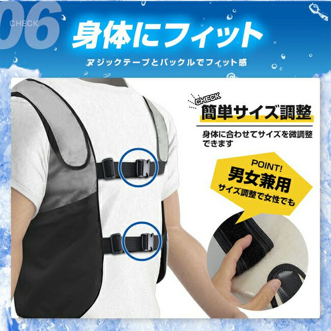 ●熱中対策に効果的な脇付近の冷却もしっかりカバー。効率的に身体を冷やす仕組みです。