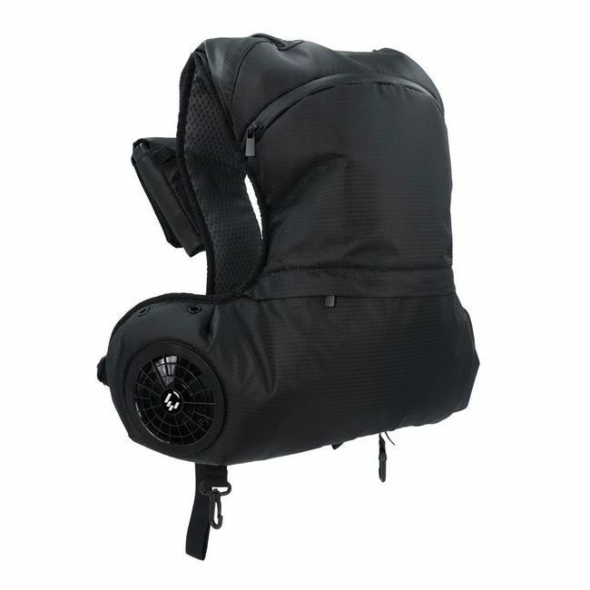 ファンの風を首元・脇下・背面・左右に巡らせ、体内から冷やします。