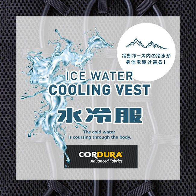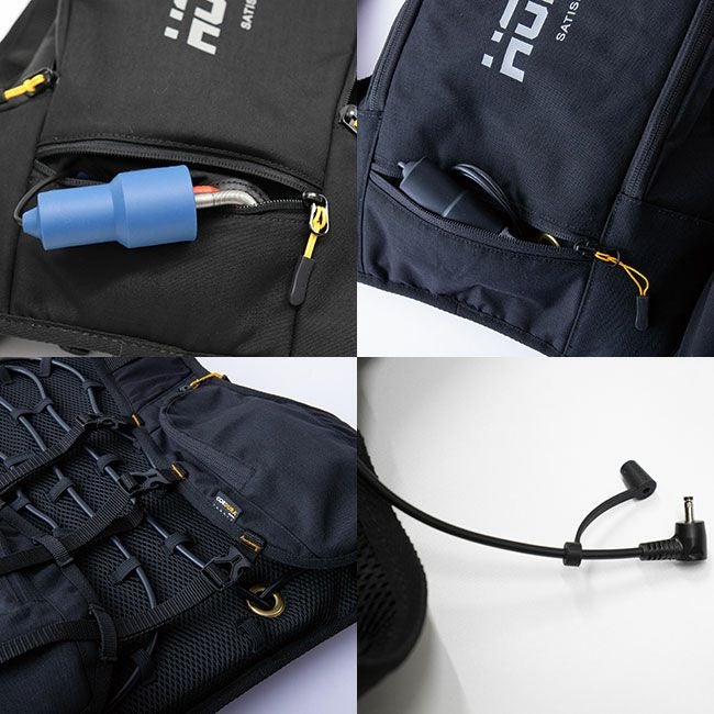 新たにフルハーネス対応にデザインされた水冷式クーリングベスト。張り巡らす水を冷やすために使用する氷結コアを、専用の薄型ボトルとすることでフルハーネスを装着しても冷水が巡る構造となっています。内部保冷生地が三層構造となったほか、バッグ内部ポケットに保冷剤も入れられるので、冷却時間をより長く保持するデザインになりました。モーター部分は防水加工が施されたので洗濯の際も取り外す必要がありません。
