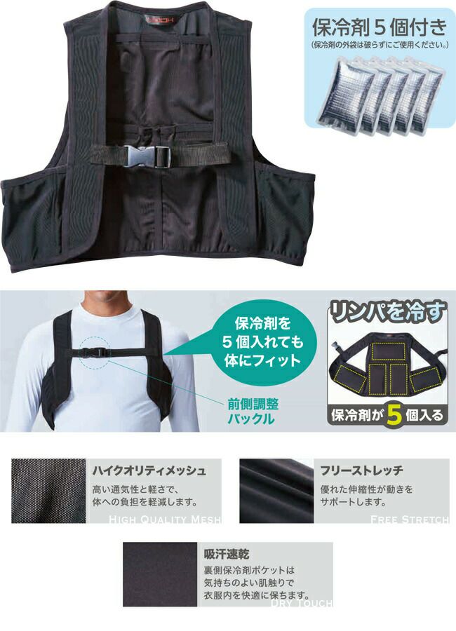 冷たさ を 着る 瞬間 冷却 クーリング ベスト 鳳凰 村上被服 クーリング ベスト 保冷剤 5個付き 【288】