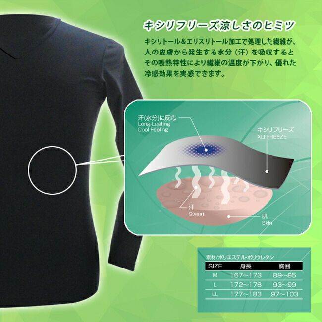機能:キシリトール&エリスリトール加工、接触冷感、吸水速乾、UVカット、ストレッチ伸縮
